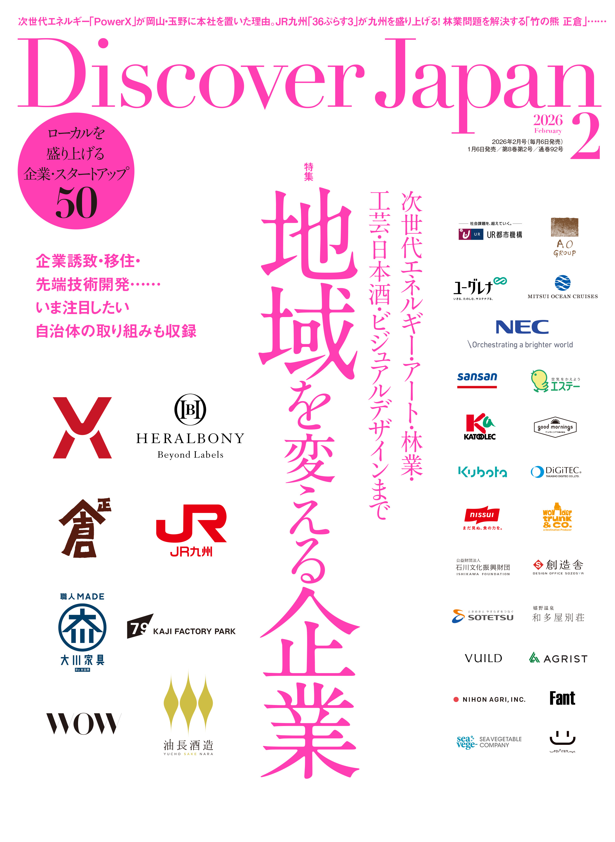 株式会社ディスカバー・ジャパンが発行する月刊誌『Discover Japan(ディスカバー・ジャパン)』2026年2月号「地域を変える企業」が発売されました。