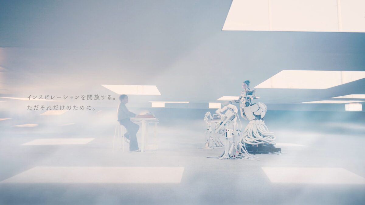 音楽、AI、ロボティクス、建築といった異なる領域が交差する幻想的な映像で、テクノロジーと創造の未来を提示しています。