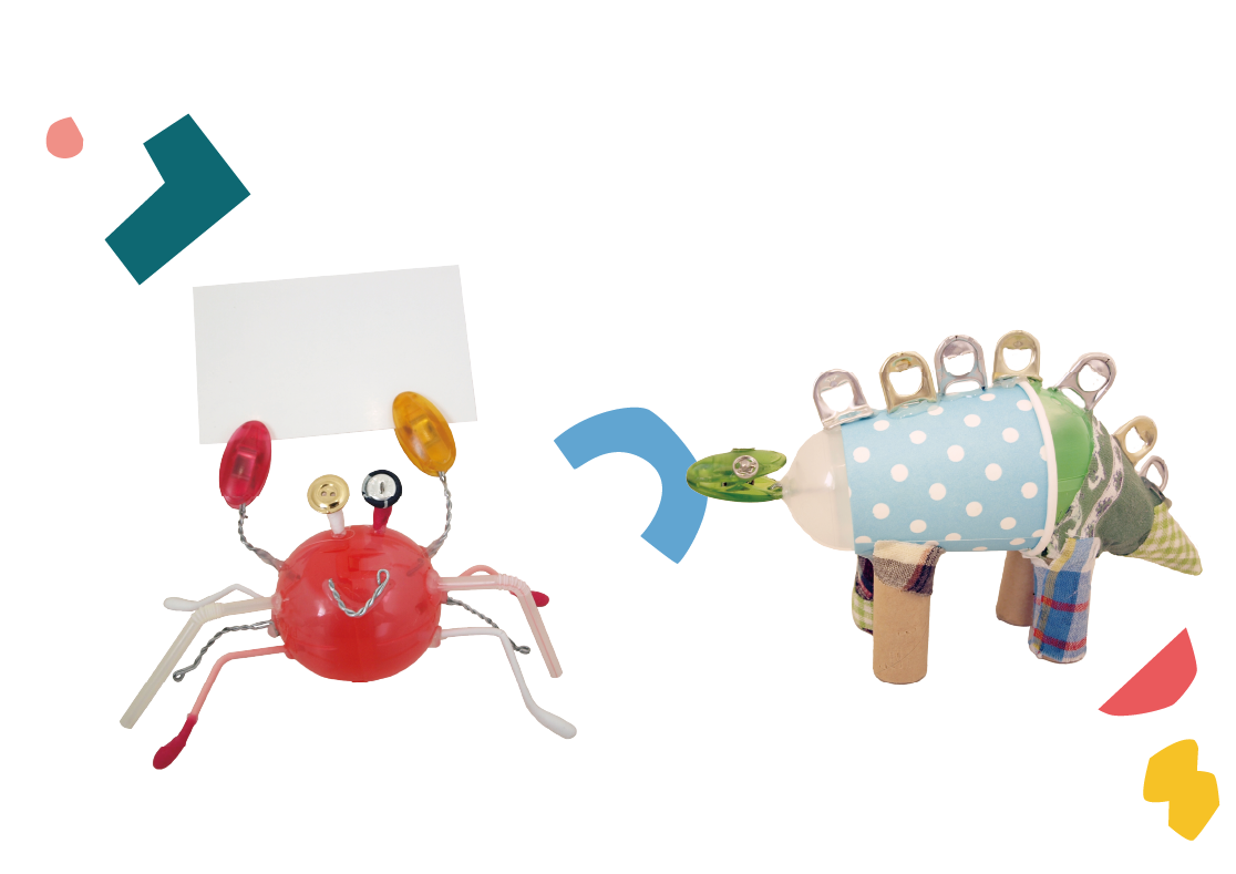 廃材からどうやって作品が作られているかを知り、要らなくなったものからオリジナルのペーパースタンドを作ります。