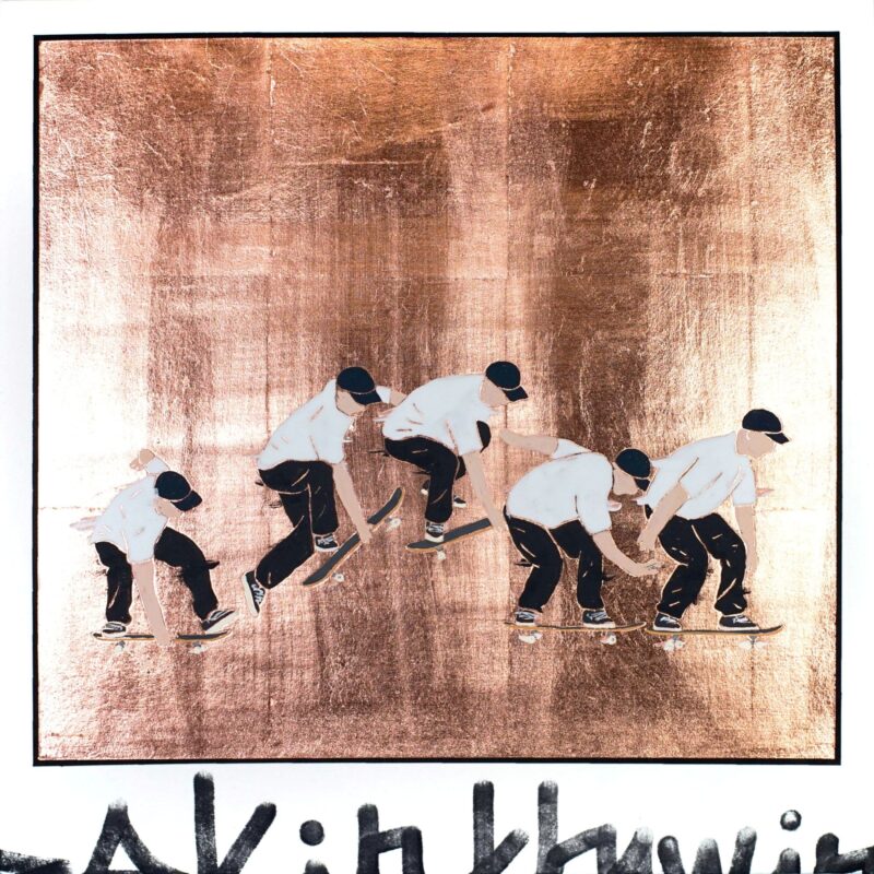 日本画×ストリートをテーマに、箔や岩絵具、和紙といった日本画材を用いつつ、タギング(文字)の画面構成等ストリートのカルチャーから影響を受けた要素を取り入れた作品を制作している。