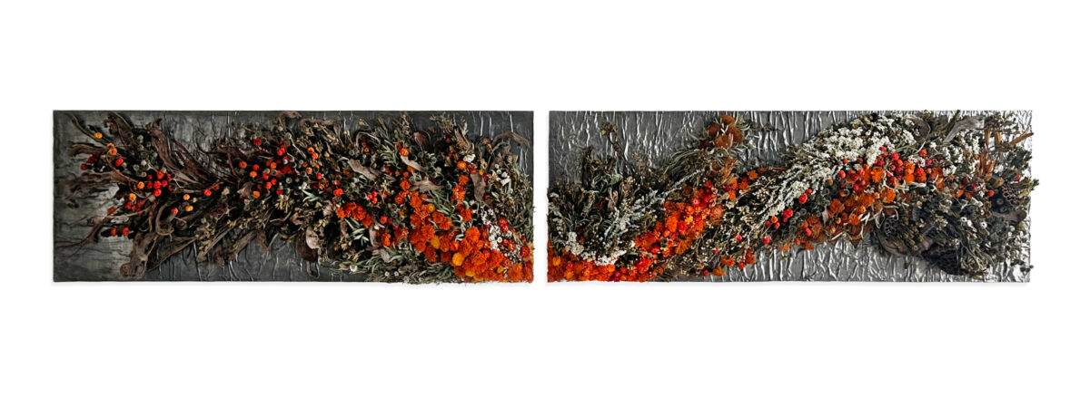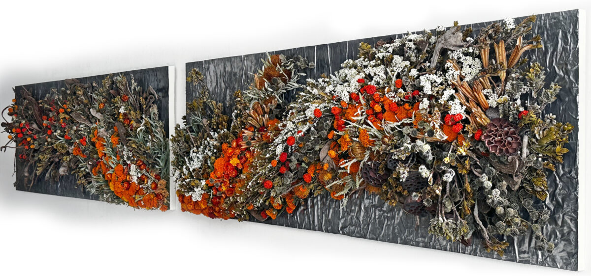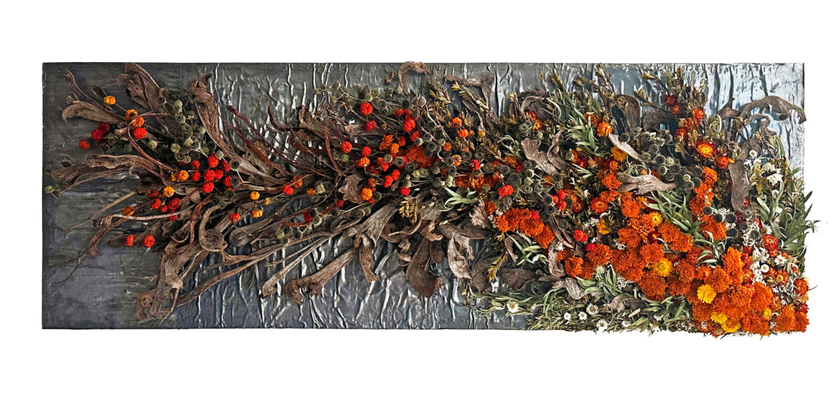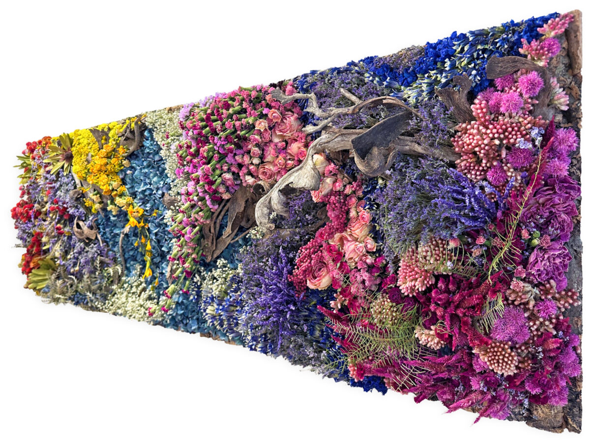 アヤコタナカドライフラワーアレンジメントは「Unparalleled Art with Flowers -比類なき花のアート-」 をミッションに、花によるアート表現を追求し、絵を描くように、オブジェを創るように作品を制作してまいりました。私たちの花は化学的処理を一切施さず、湿度を精密に整えることで、生花からドライフラワーへと生まれ変わります。その変化の過程で花は独特の揺らぎと密度を宿し、色彩は凝縮され、深みを増し、より美しく輝きます。