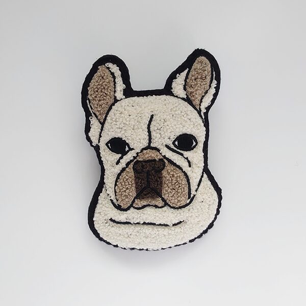 “ぶさかわ”な表情がくせフレンチブルドッグの刺しゅうを施したチャーム。ピンとリングがついているので、2wayで楽しめます。