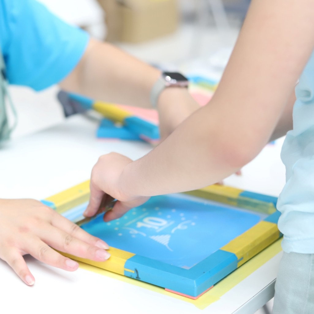 デザインやカラーを選び、シルクスクリーンで自分だけのオリジナルバッグを作るワークショップ。