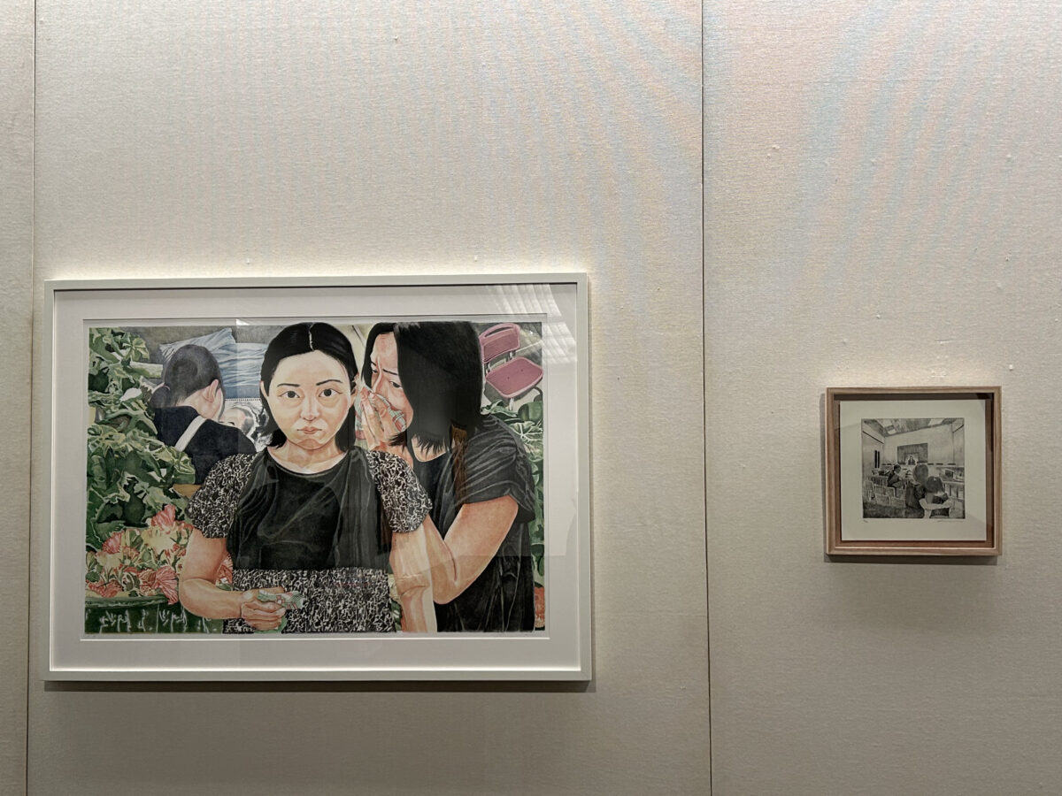 作者は数々の事件に取材し、その場で感じたことを描く一方、丹念なリサーチを行う法廷画家としての側面も持っている。痛ましい事件を題材とし、当事者の姿を自らの顔(自画像)に置き換える手法には、当事者の痛みを自らのものとして背負いながら描く姿勢が伝わってくる。今回はステートメント的要素がほとんど見られないものの、背景を知らずとも、リトグラフにおける一見リアルに見えながらも実際には写実でない描写や、視点の曖昧さなどにより、作品全体に不穏さが漂う。銅版の繊細な線描も、法廷の情景を描くのに適しており、これまでにない版画表現を切り開こうとする意欲が感じられる。