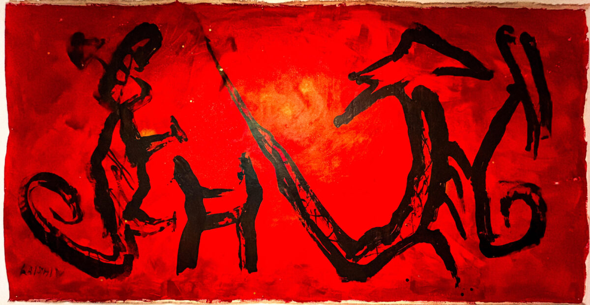 この作品を真に支配しているのは――圧倒的な「線」だ。 一筆一筆が爆ぜるように放たれ、吠え、唸り、呼吸しながら、生きた「気」をそのまま叩きつけている。
