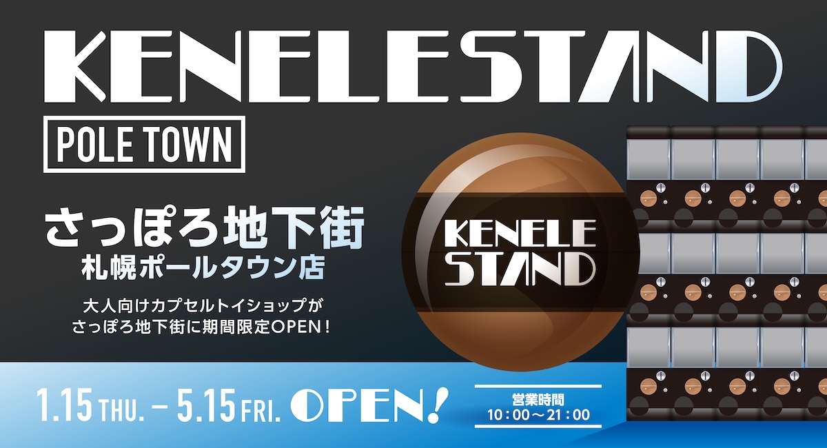 アート雑貨メーカーの株式会社ケンエレファント(本社:東京都千代田区、代表取締役社長:石山健三)は、北海道札幌市・中心大通に位置する「さっぽろ地下街」ポールタウン内に、自社のアート雑貨・ミニチュア製品を取り扱う物販スペースを併設した『KENELE STAND(ケンエレスタンド) 札幌ポールタウン店』を、2026年1月15日(木)~2026年5月15日(金)の期間限定でオープンいたします。