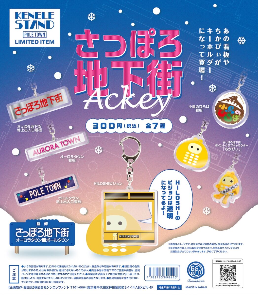 そして、『さっぽろ地下街アクキー』は、全7種類で「さっぽろ地下街」を象徴するアクリルチャームとなっております。