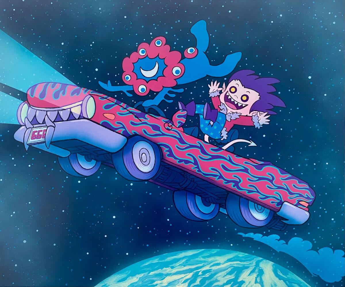 1975年生まれ。幼い頃から絵に親しみ、独学で自身の表現を育む。キャンバス作品のほか、ウォールペイントやライブペイントも精力的に行う。