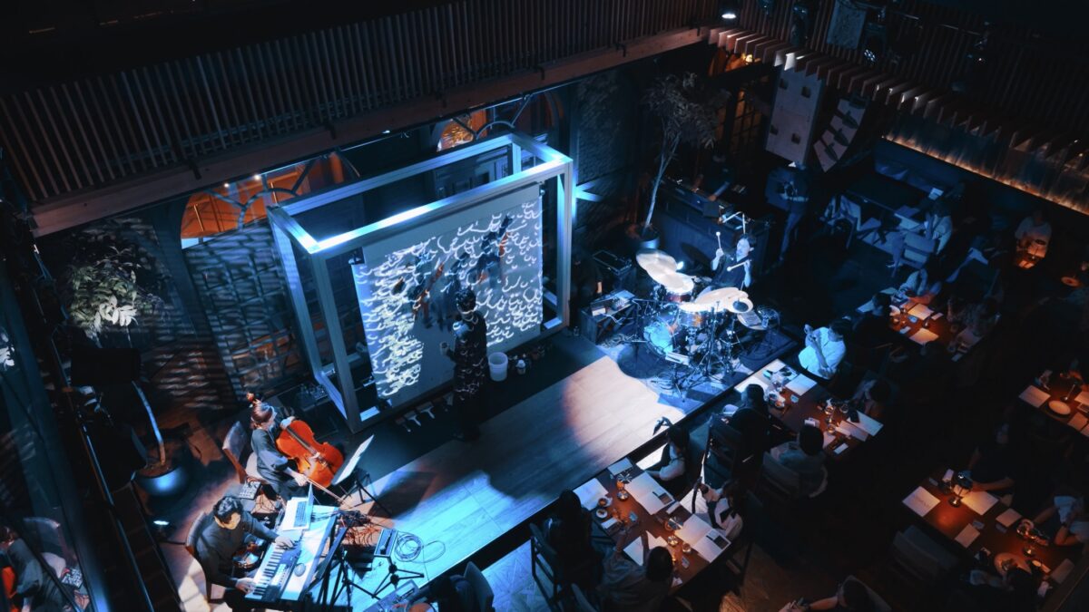 赫赫 林宋其・真田将太朗とmillenium parade 常田俊太郎・石若駿による、美術と音楽がテクノロジーと共に交錯する創作パフォーマンス「Contrapunctus」(2025年9月26日、東京 BLUE NOTE PLACEで公演)