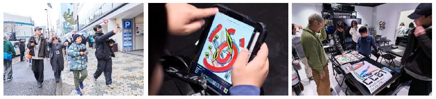 原宿移転を記念し、12月20日(土)・21日(日)の2日間、都市の風景をインク化するデジタルツール「Urban Ink」を活用したグラフィックデザインワークショップを実施。当日は、小学生から大人まで幅広い世代の方々が参加し、「Urban Ink」 の開発を手がけたNEW Creators Clubが講師として参加者の制作をサポートしました。目を引くビジュアルが溢れる原宿の街をあえて裏道から探索し、普段は見過ごしてしまいがちな街の風景を、インクの素材として写真に収めていきました。その後、街から採集したインクを用いて、参加者それぞれの感性でオリジナルポスターを作成。ワークショップの締めくくりには、作品に込めた想いや制作の視点を共有し合い、原宿という街の新たな魅力を再発見する機会となりました。