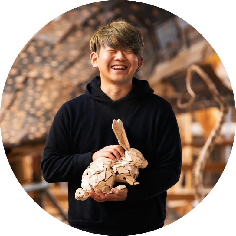 新潟県長岡市在住。廃材アーティスト。 本来捨てられるはずだった木材に新たな命を吹き込み、実物大の動物を制作する。「NIIGATA V DESIGN AWARD 2024」審査員特別賞受賞。都内有名ホテルや商業施設での作品展示に加え、中国・深圳のアートフェアにゲスト招聘されるなど、国内外で注目を集める。