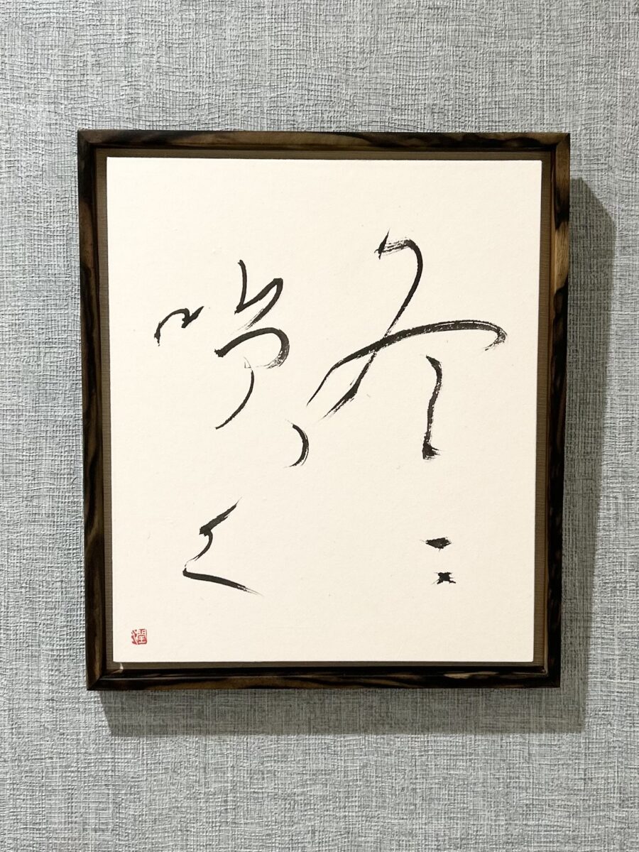 私は仕事で扱う包丁に刻まれた文字の美しさに感銘を受け、書の世界に足を踏み入れました。書は自分を整えるセルフメディテーションであり、日々の商いの合間に心に留まった言葉を墨に託しています。気温や湿度、心身の揺らぎで変わる線の勢い。そのコントロールできない揺らぎこそ、私が生きている証です。「変化の激しい現代で、壊れないものとは何か」自問自答の中で書き溜めた作品たちが、皆様の心に、ふっと静かな風を届けることができれば幸いです。