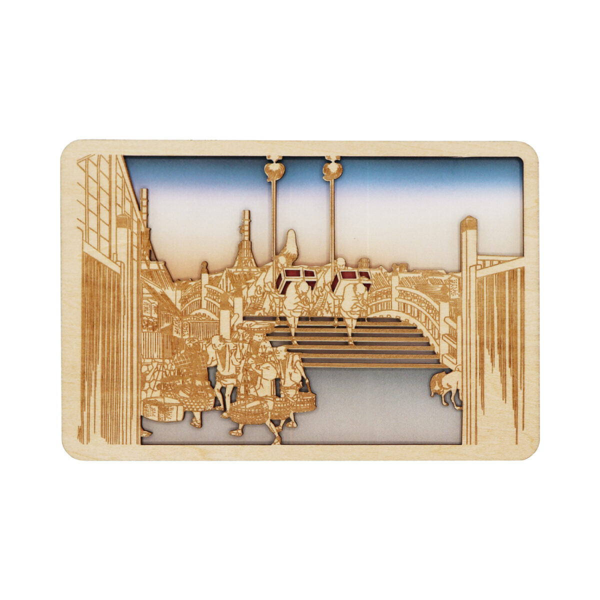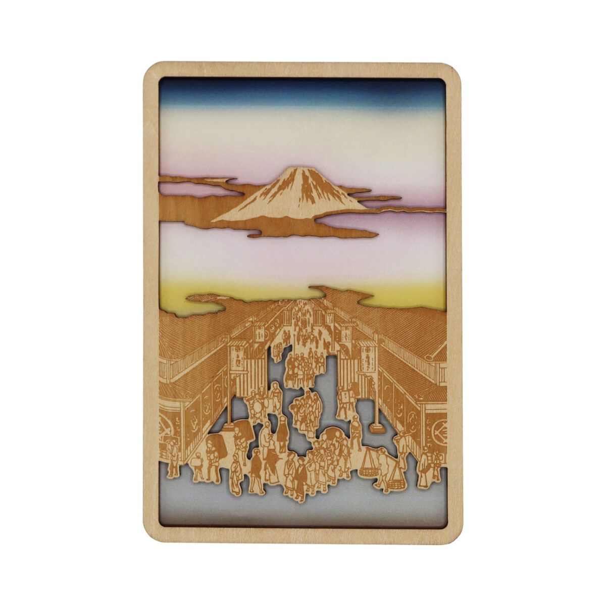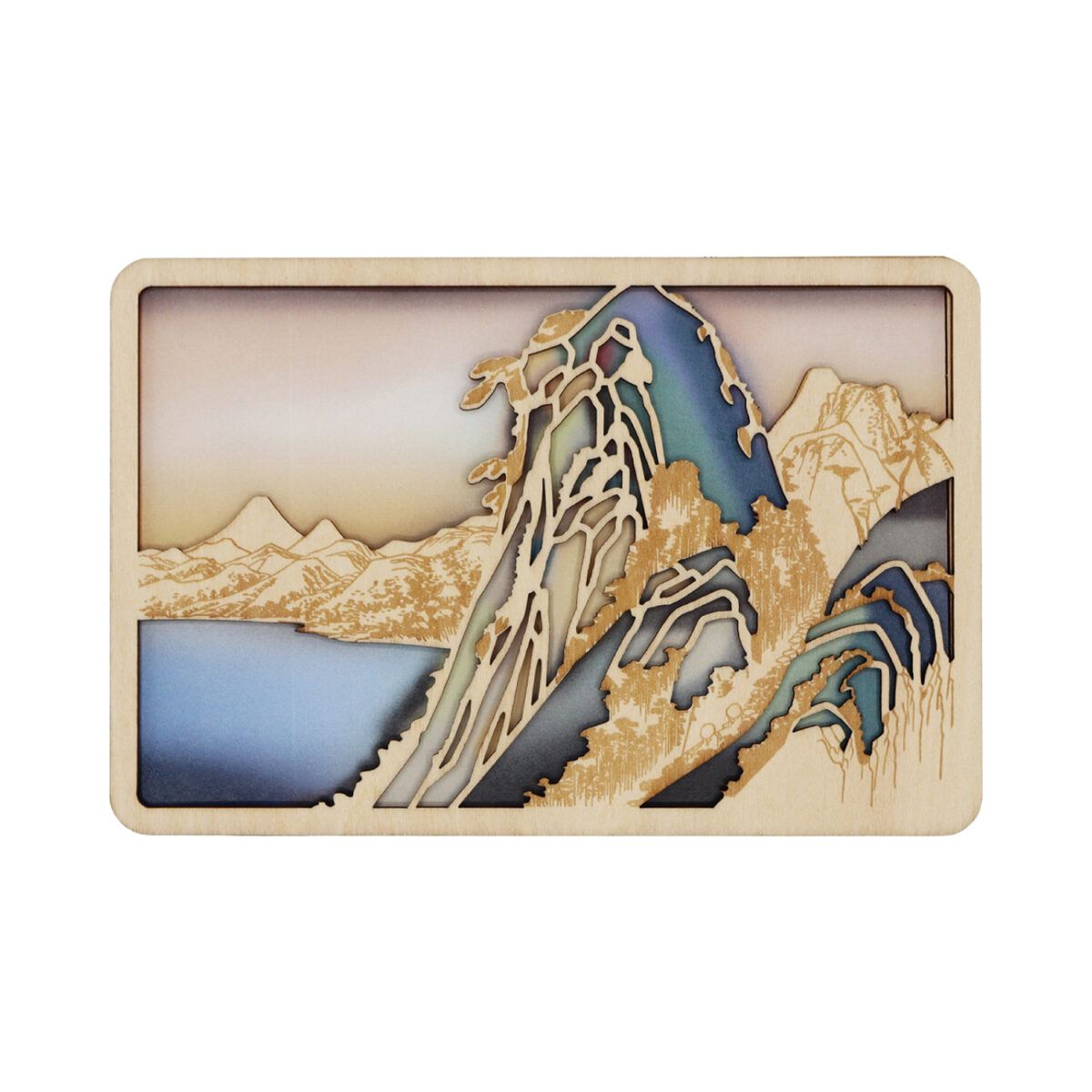 「かさね木メッセージカード」は、美しい風景や建物などのさまざまなモチーフを、精巧なレーザーカットと彫刻、繊細な色彩で表現した、木製のフレーム付きのメッセージカードです。