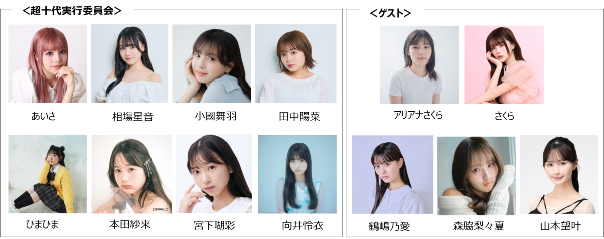 また、出演者には、あいさ、相塲星音、ひまひま、本田紗来、向井怜衣ら、多方面で活躍する十代のメンバーが集結。さらにゲストにはアリアナさくら、さくら、鶴嶋乃愛、森脇梨々夏、山本望叶など豪華な顔ぶれが続々と出演決定。多数のモデル、YouTuber、TikTokerなど十代を中心に支持を集める出演者たちが集結し、来場者とともに、会場とオンラインの両方でイベントを熱く盛り上げます。