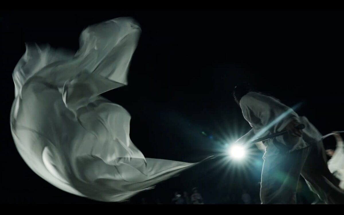 シルホイールと大旗という独自の組み合わせによるパフォーマンスは、重力と浮遊のあいだを行き交う身体表現が特徴で、静けさと緊張感を併せ持つ不思議な荘厳さを湛えていました。目の前で繰り広げられる迫力ある演技に、観客は次第に引き込まれ、演技の節目ごとに大きな拍手が送られました。中には、感動のあまり目を潤ませる来場者の姿も見られました。