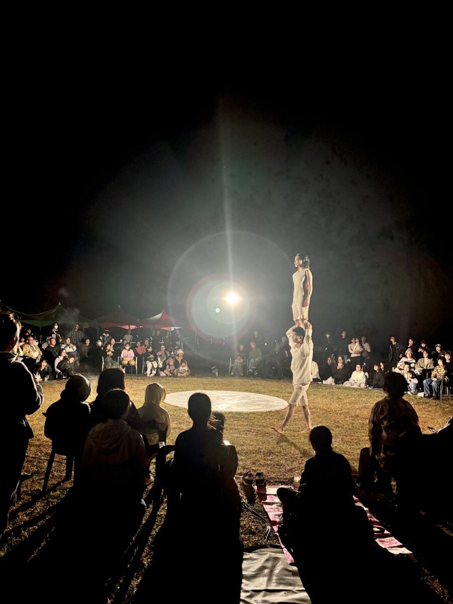 「種子島宇宙芸術祭2025」で、現代サーカスカンパニーが夜の公園を舞台に上演。「うきも-project-」による特別ステージが観客を魅了。