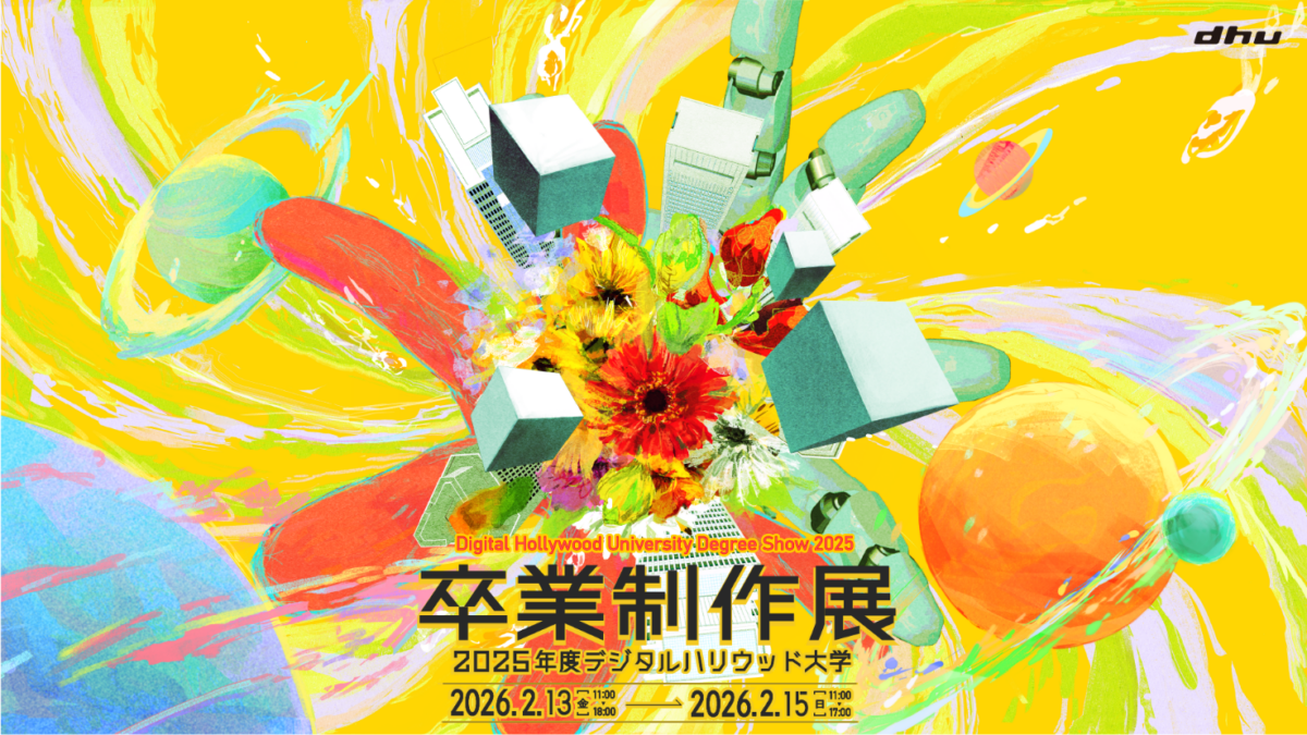 文部科学省認可の株式会社立の大学として、デジタルコンテンツと企画・コミュニケーションを学ぶデジタルコミュニケーション学部(4年制大学)と、理論と実務を架橋し新たなビジネスを生み出すデジタルコンテンツ研究科(専門職大学院)を設置するデジタルハリウッド大学(DHU、所在地 東京・御茶ノ水、学長 杉山知之)では、2026年2月13日(金)~15日(日)の3日間、『2025年度卒業制作展』を開催いたします。