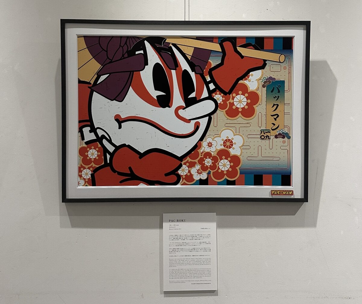 会場には、『PAC-MAN』のゲーム世界をもとにしたメタルキャンバス作品が並びました。