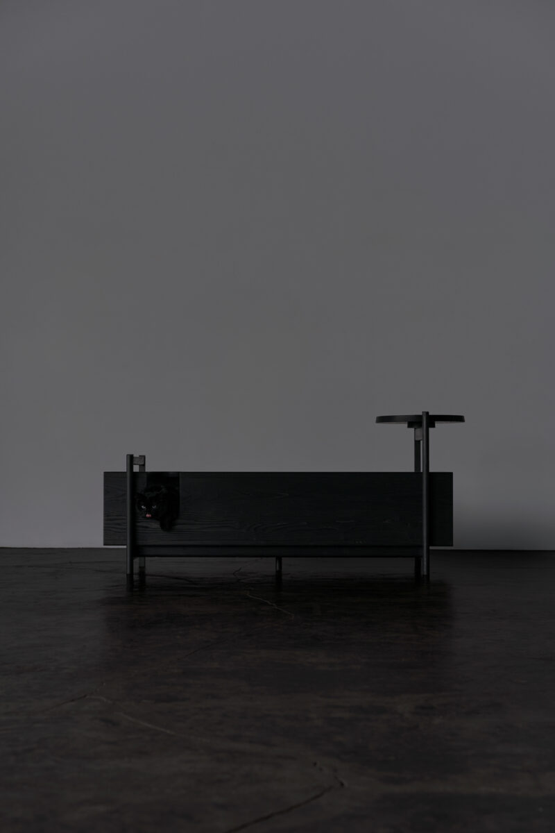 デザイナー自身とともに暮らす、一匹の黒猫 (保護猫)「ジェス」の為に生まれ、「猫目線 / 人目線」を核にデザインされたユニークなプロダクトを、会場でぜひご覧ください。