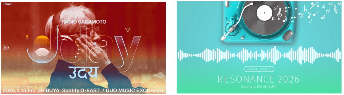 また、2月11日(水・祝)には、当社と同じくオフィシャルパートナーとして「DIG SHIBUYA 2026」に参画するラジオ局 J-WAVE (81.3FM)とタイアップし、3時間半の特番「J-WAVE SPECIAL RESONANCE 2026