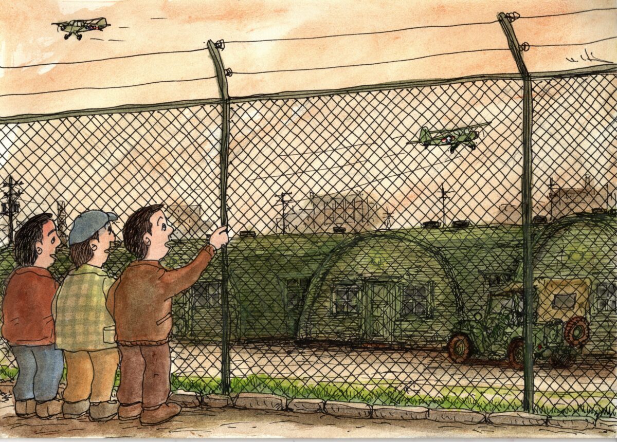 山崎秀夫《米海軍通信隊(上瀬谷)》 1979年 鉛筆、水彩、紙 30.8×40.3cm 横浜市民ギャラリー所蔵