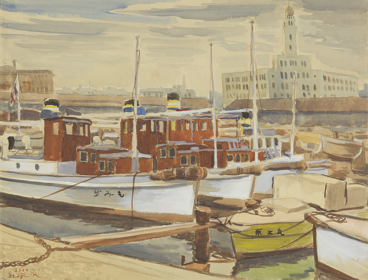三橋兄弟治《港》 1940年 水彩、紙 57.3×75.0cm 横浜市民ギャラリー所蔵