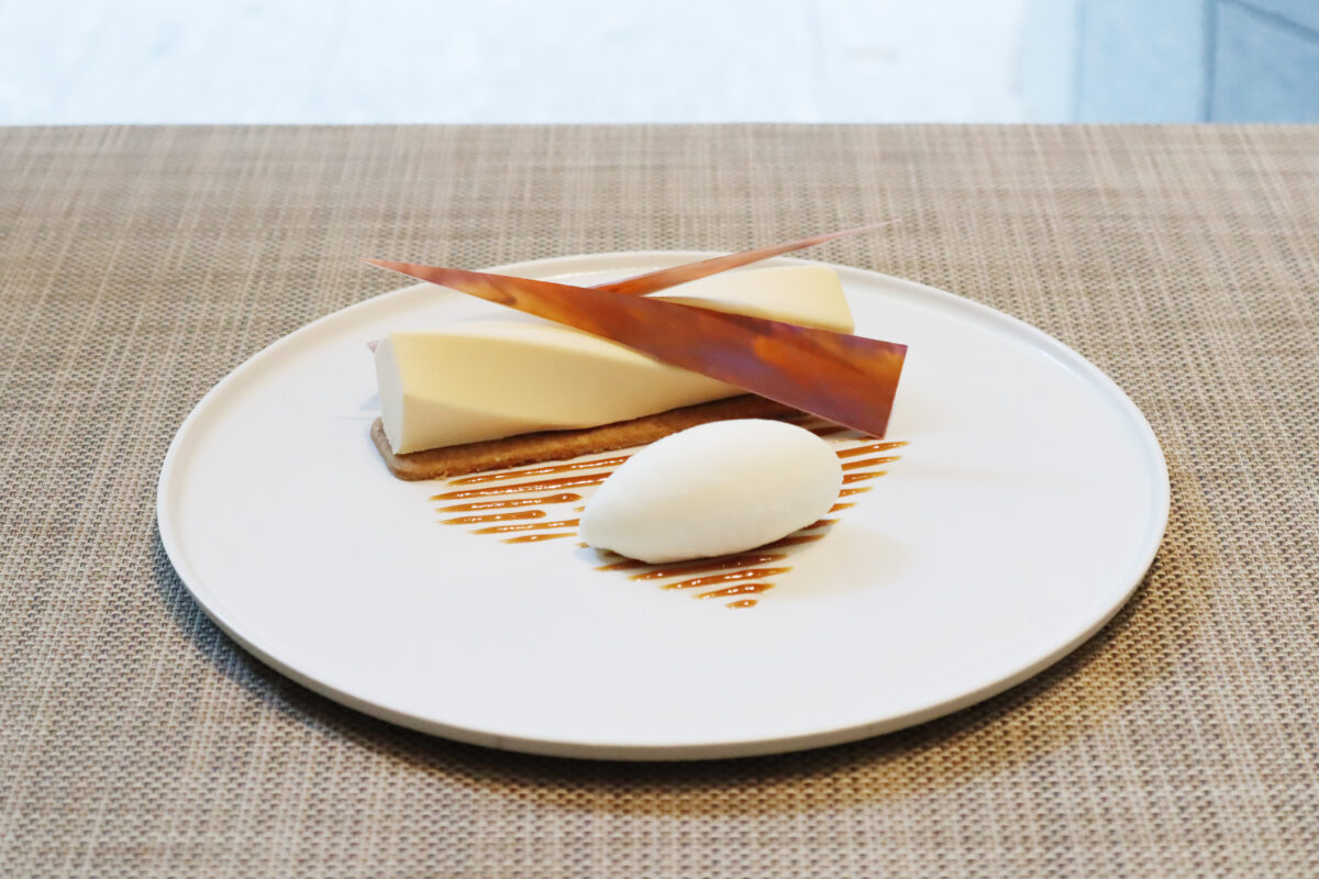 抹茶のミルフィーユ、生姜のジュレ、保科のあんぽ柿はモネの愛したジャポニスムを、ココナツのメレンゲは庭園の「太鼓橋」を模しております。