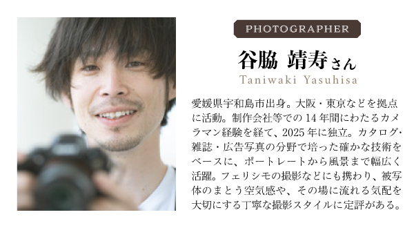 当日は、フェリシモのモデル撮影などで活躍するカメラマンの谷脇氏を含め、計2名のプロカメラマンが同行します。 撮影のコツをきめ細かくアドバイスできるため、初心者の方でも安心です。「カメラを持っていない」という方も大歓迎。 スマホや、あるいはお手持ちのカメラで、構図の取り方や視点の変え方を学ぶだけで、いつもの景色が違って見える感動を味わっていただけます。