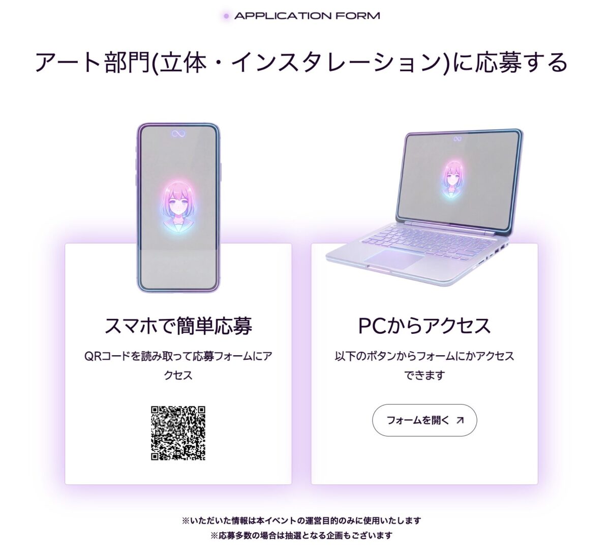 ※展示・発表方法は作品内容や会場構成により調整される場合があります。公式HPより注意事項をご確認の上、ご応募いただくようお願いいたします。