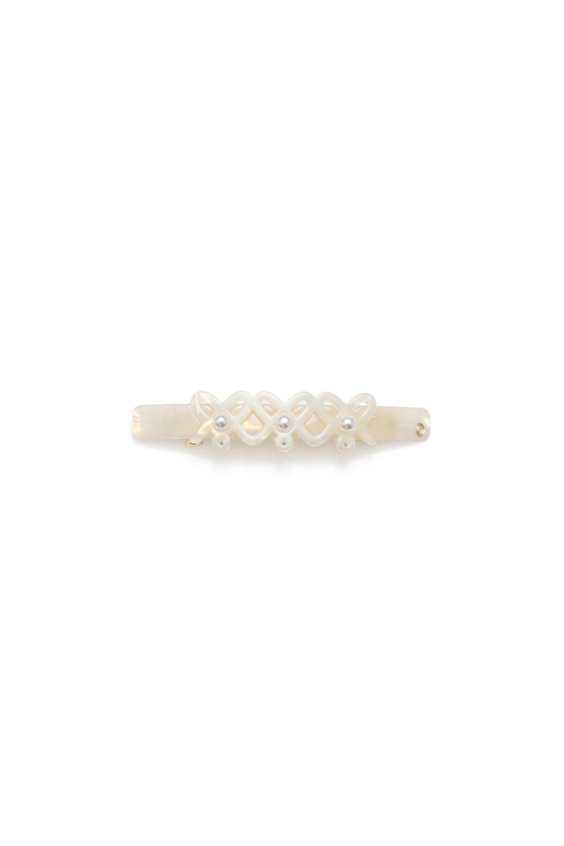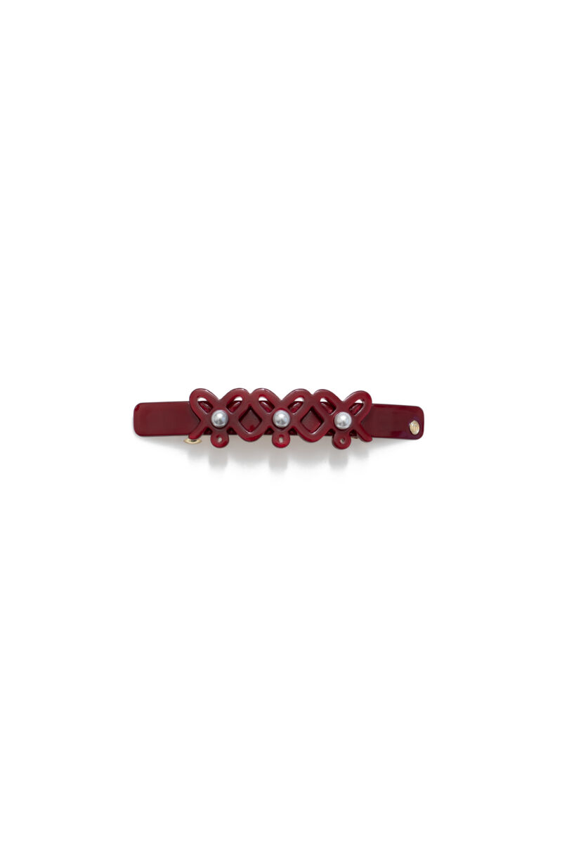 『トリポリの姫君イルゼ』に描かれているハートを大胆なサイズ感でデザインしたバンスクリップ。存在感のある大きなパールがアクセントとなり、バックスタイルを華やかに彩ります。