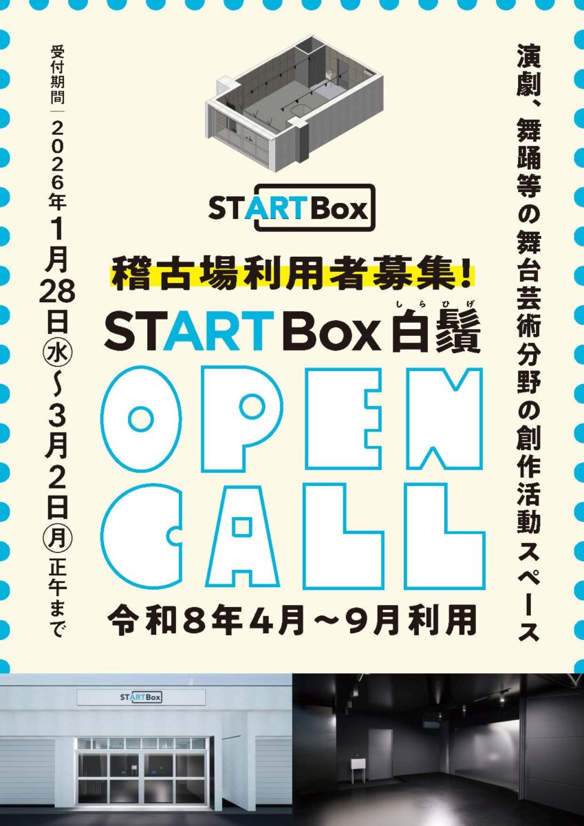 このたび、「START Box ササハタハツ」及び「START Box 白鬚」において、4月から利用するアーティストを募集します。各施設ともリーズナブルな料金でご利用いただけます。