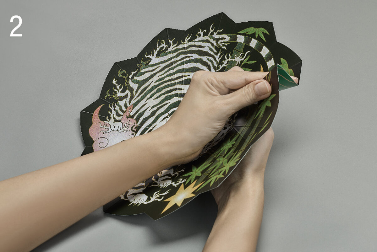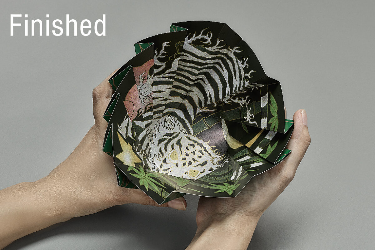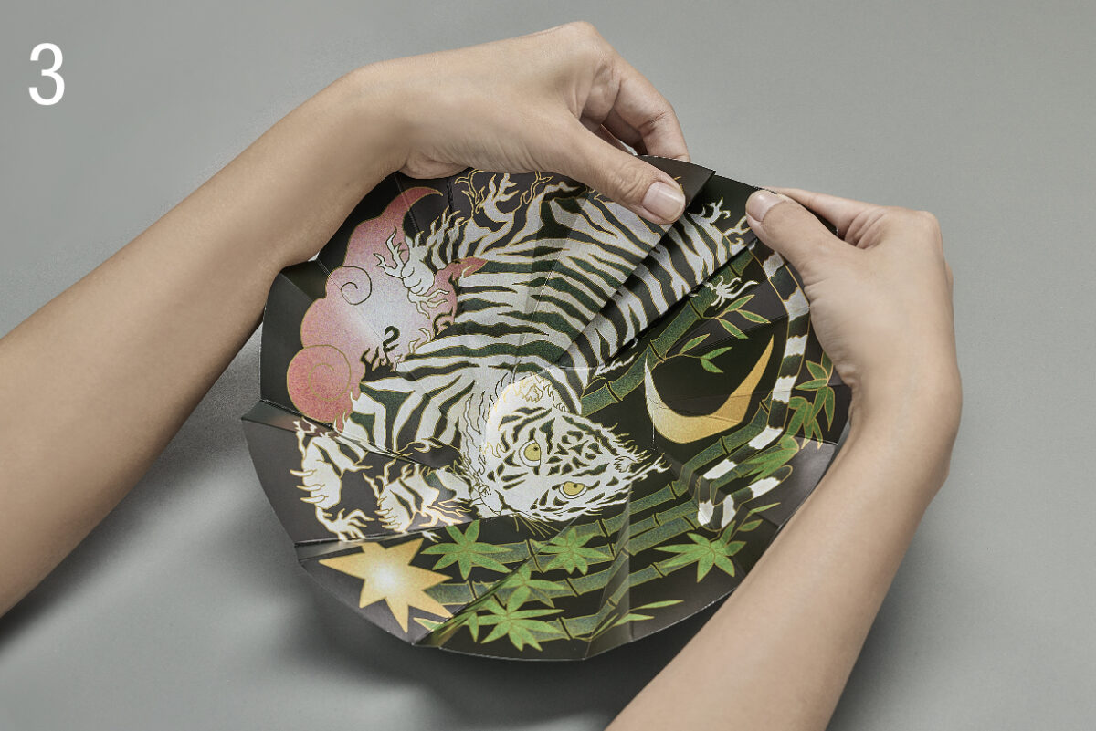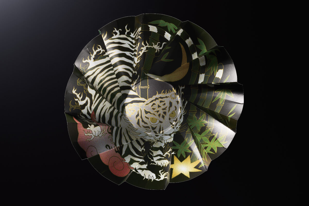 「ORIGAMI-UTSUWA 虎」 太陽の沈む西方を守護。商売繁盛の象徴。邪気を祓い幸せを招く。