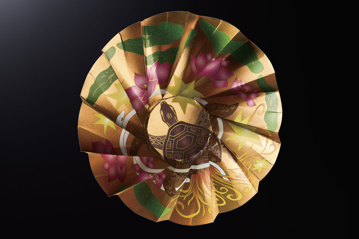 「ORIGAMI-UTSUWA 亀」 北方を守護。安定と再生の象徴。繁栄や長寿を招く。