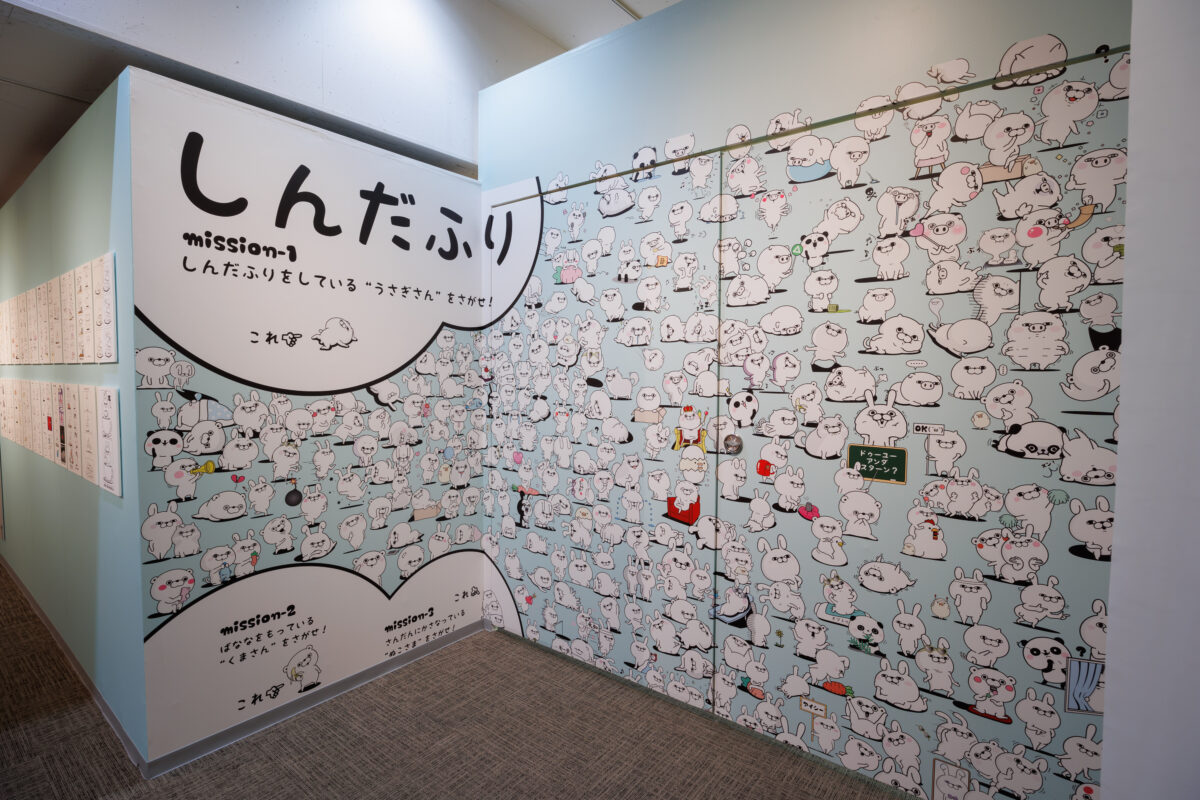 うさぎさん、くまさん、ぬこさま、ぶたさん、わんこ、ひよこさんのスタンプを模した立像の展示