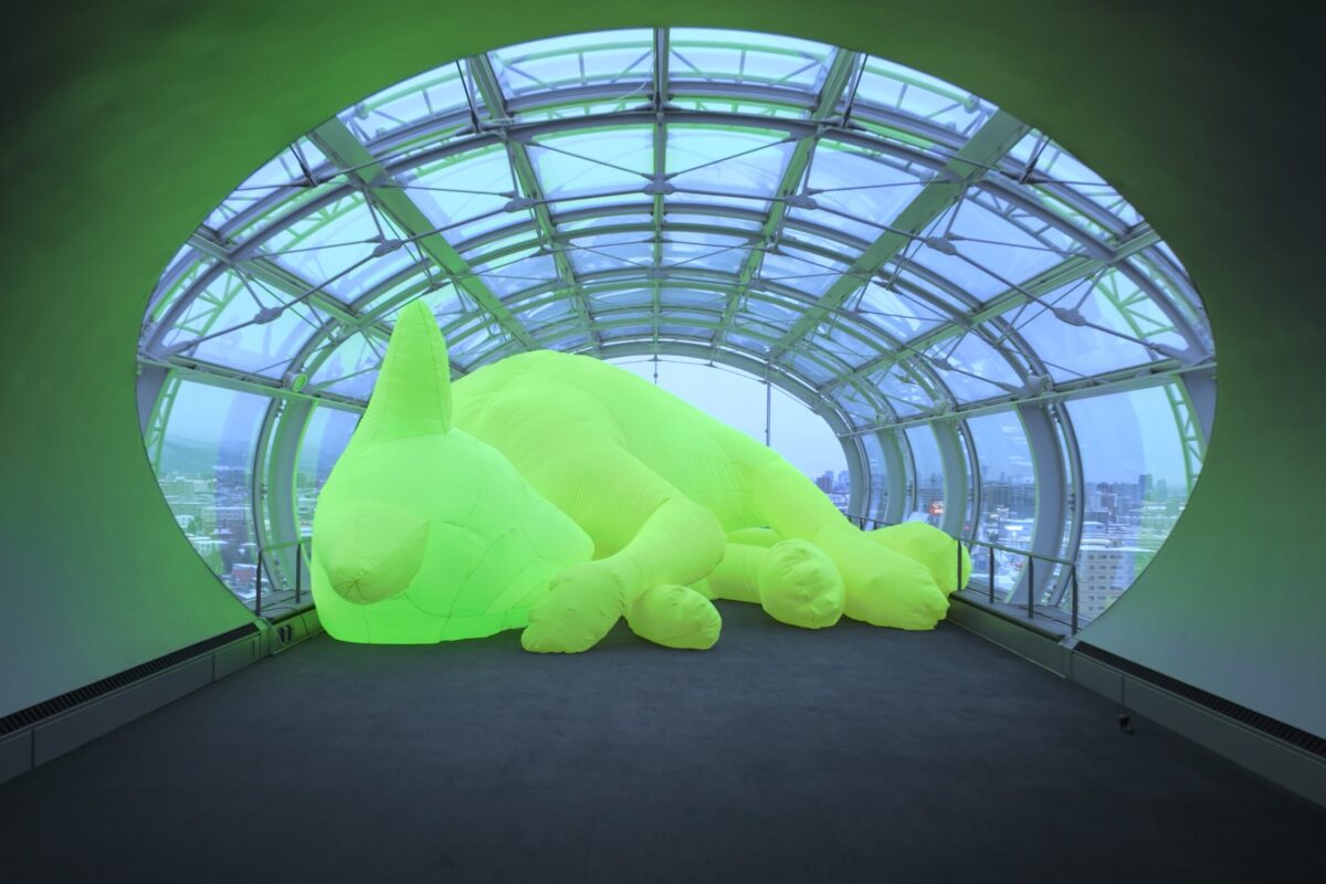 札幌市内を一望できる大和ハウス プレミストドームの展望台に、WA!moto. Motoka Watanabeによる巨大な猫のインフレータブル彫刻「OU-CNI.」が出現します。