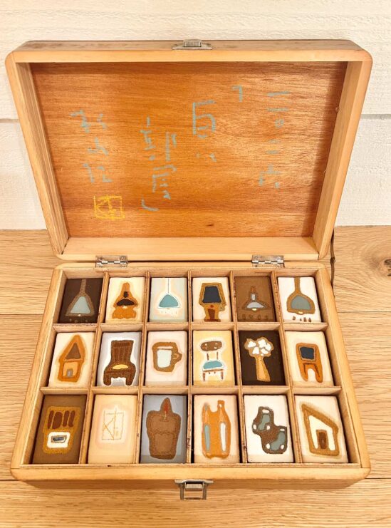 明るい部屋 18.5×25.9×8.2cm, 2026年, 箱, 板, 寒冷紗 岩絵具, 膠, 色鉛筆