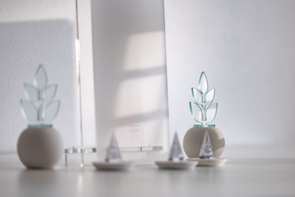 伝統的な神棚にも、モダン神棚にも。榊の葉のような、緑の差し色が入ります。