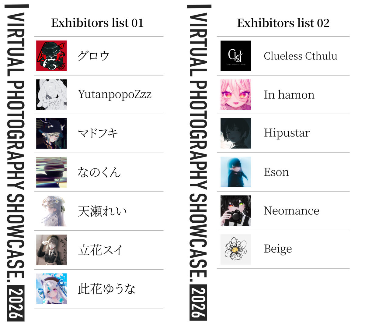 ・VRChatを中心に活動する日本と海外の13名のバーチャルフォトグラファーを招待。