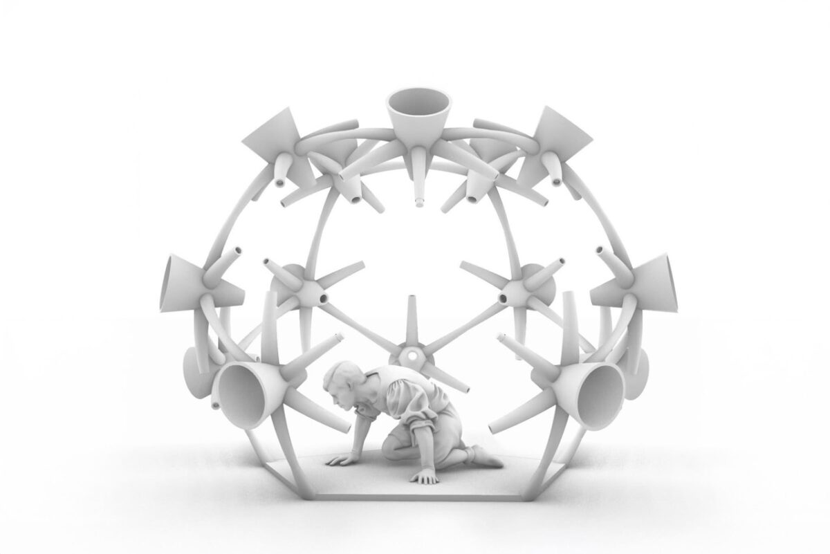 空間には、特定の地点に立ったときにだけ立ち上がる“点在する音”と、移動に合わせて連続的に変化する“流動する音”が共存し、聴覚的な発見と遷移を生み出す。日本各地で採取したフィールドレコーディングを素材に、都市の雑踏、山間の静けさ、海辺のうねりといった環境の層を編み直し、鑑賞者の行為そのものを編集点として体験を生成する。
