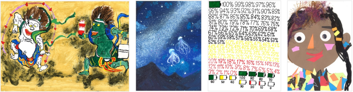 展示される作品の中には、障害のある子どもたちの作品も、そうでない子どもたちの作品も含まれています。