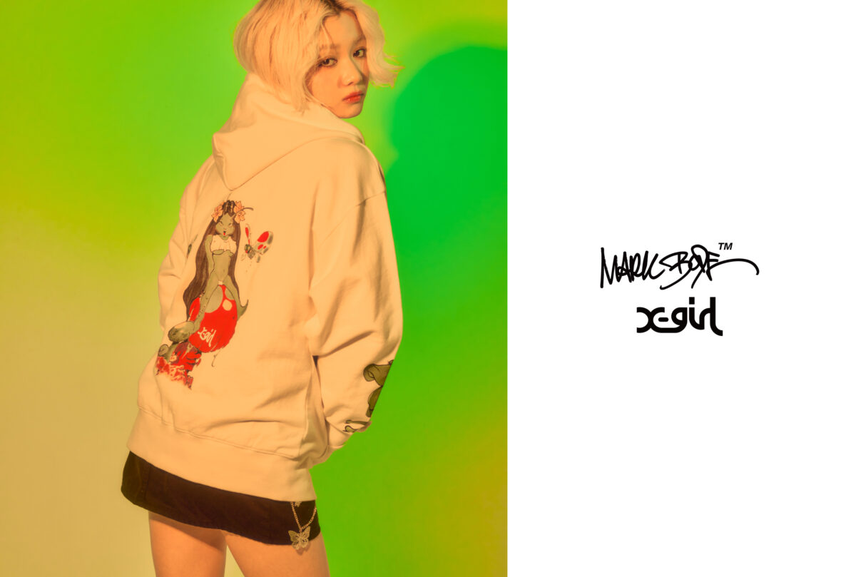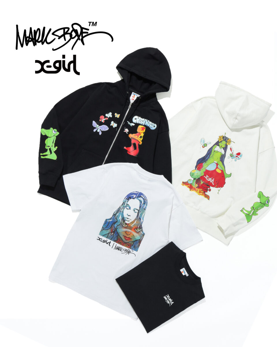 ファンタジーの世界観で描かれた力強い女の子がX-girlのターゲット層にとって非常に魅力的であるはず、というMark Bode氏の思いが込められたアートワークをピックアップし、X-girlのブランドロゴを取り入れたスペシャルなデザイン。