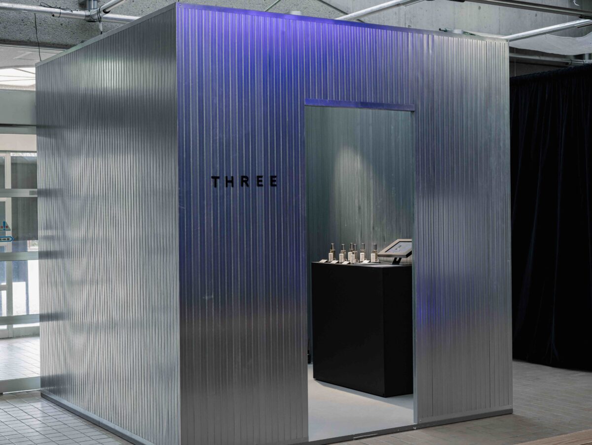 THREEの移動式インスタレーションを、本プロジェクトでは園内にある温室のエントランスに設置。その時の気分や、温室内の環境(温度・湿度)が自律神経に与える影響に着目し、その瞬間の心身に寄り添うTHREEのフレグランス「エッセンシャルセンツ R」の香りをレコメンド。特別な空間の中で導き出された香りをオリジナルのポストカードに添えて、インスタレーションの余韻を香りと共にお持ち帰りいただけます。