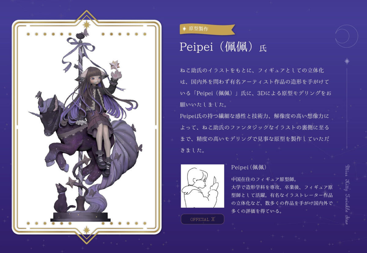 「Miss Kitty Twinkle Star」が持つ魅力的な造形を世界観を持ったフィギュアとして具現化するために、実力と人気のある各分野の3名のアーティストにご協力いただきました。