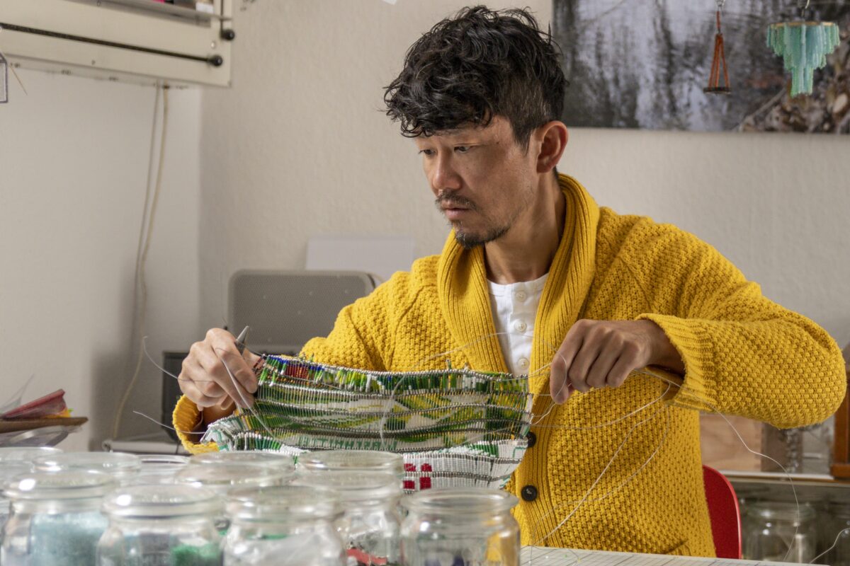 ガラスという透明な物質を用いる三嶋りつ惠は、光そのものを彫刻化し、空間と一体化する作品を提示する。シゲ・フジシロは、ガラスビーズによる膨大な手作業を通して、消費社会の記憶や労働の時間をきらめく表層に刻み込む。さらに舘鼻則孝は、伝統的装飾文化を現代的に再構築し、身体と装い、儀礼と時間の関係を問い直す。