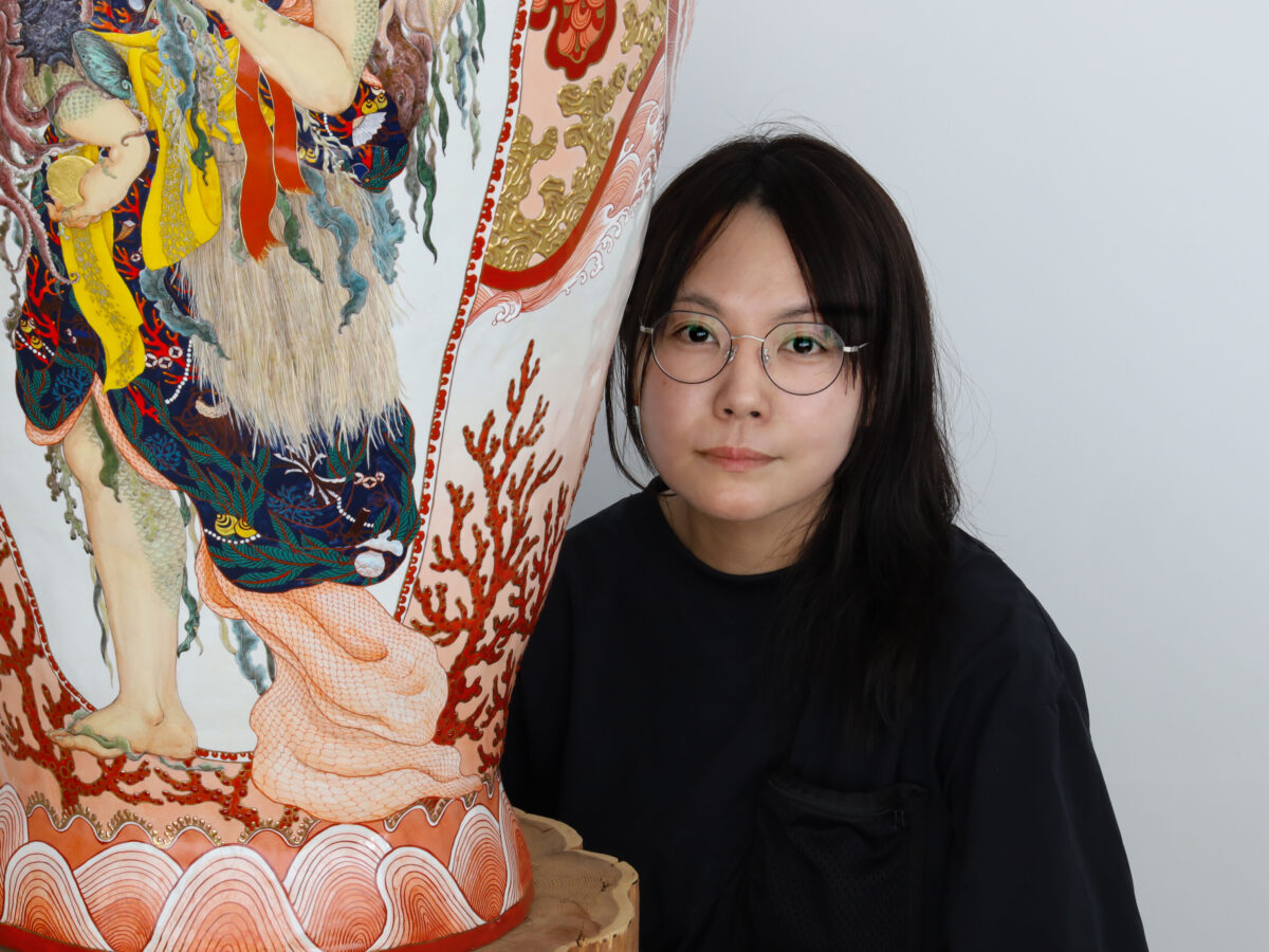 牟田陽日は、九谷焼に学んだ色絵の技法を基盤に、日本文化において周縁化されてきた女性像や自然観を、陶磁器という媒体を通して再解釈してきた作家である。近年の制作において重要な主題となっているのが「山姥(やまんば)」である。山姥は、母性と暴力、祝福と恐怖、聖と俗といった相反する要素を内包する存在として、日本の民間伝承の中で語り継がれてきたが、同時に、制度や秩序から逸脱した女性性の象徴でもあった。