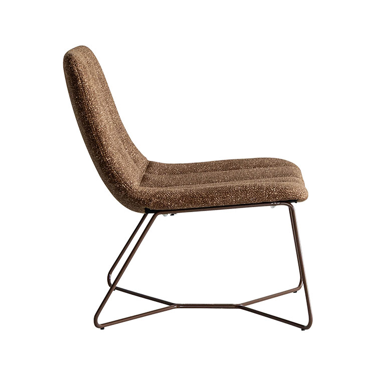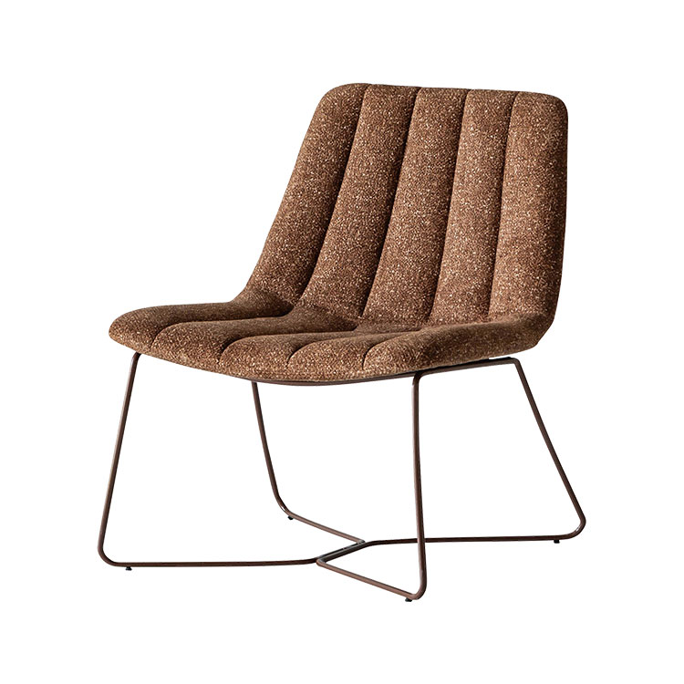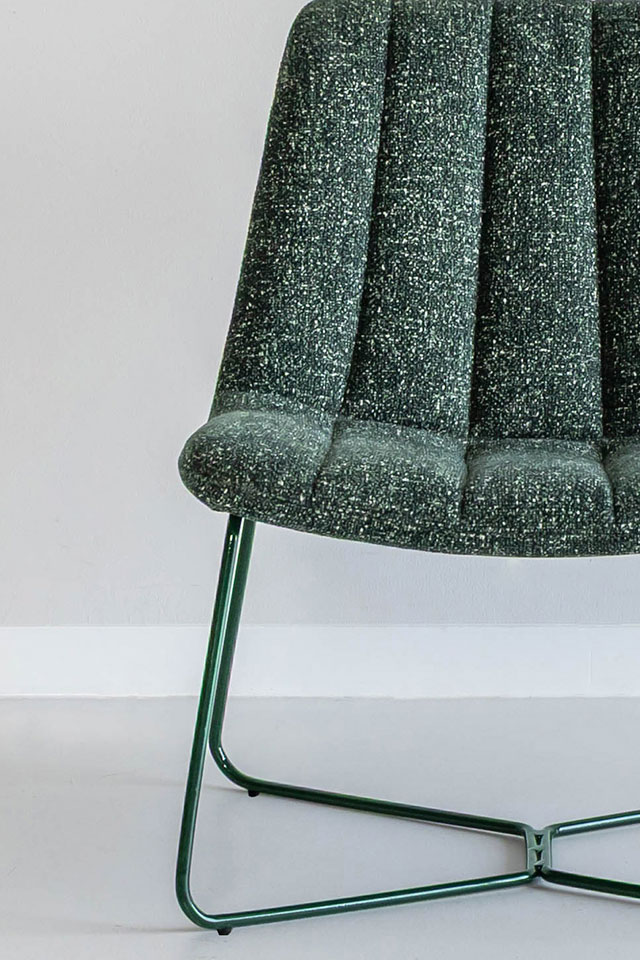 シンプルなシルエットにスリムなスチールを組み合わせたラウンジチェア。座面と背もたれにはウレタンフォームを使い、優しい座りに。独特な立体感をもつLEO生地のレトロポップなカラーリングもポイント。フレームまでワントーンに揃えることでプロダクトとしての存在感が際立ち、置くだけでインテリアのアクセントに。空間をぐっと引き締めてくれます。シンプルなデザインなのでシーンを選ばず、取り入れやすいアイテムです。