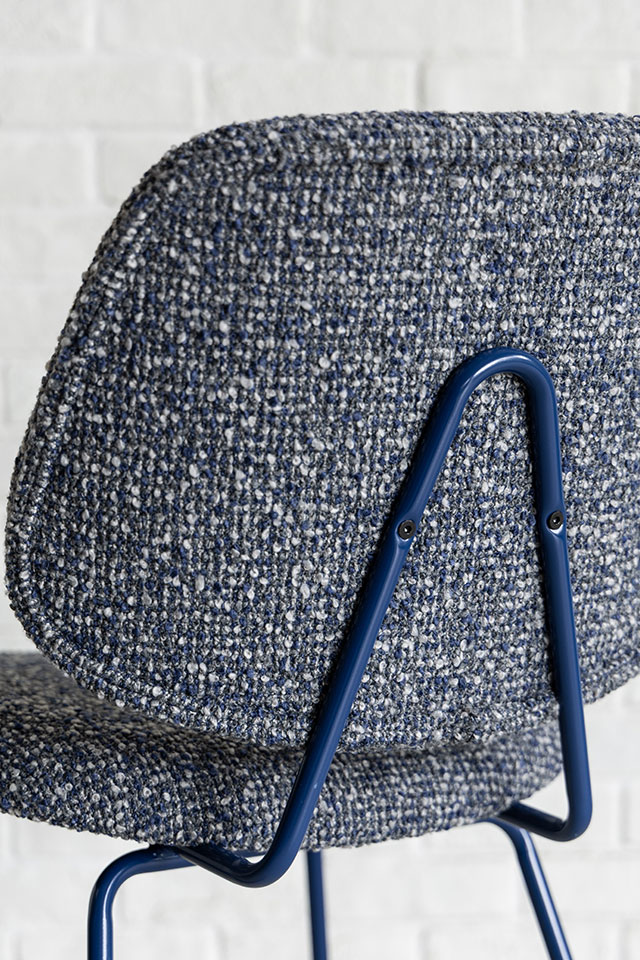 エッジの効いたスチール脚が印象的なアボックチェアにポップなカラーリングのシリーズが追加になりました。張地には、複数の色を織り交ぜた表情豊かなNSA生地を採用。太めの糸を合わせて織り上げた、麻混の織物のような柔らかく立体感のあるマチエールが特徴です。今回の追加により、アボックチェアのバリエーションは24種類へと拡充。インテリアや好みに合わせて自由な選択が可能です。