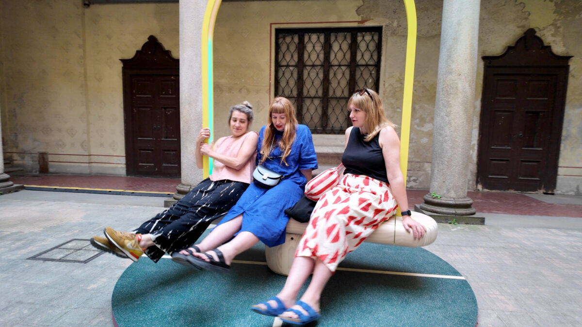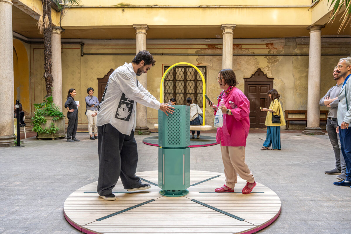 《Duetti》は人と人をつなぐアート作品です。イタリア語でデュエット(二重奏、二重唱)を意味するこの作品は、音を奏でるベンチとボラード(杭)の2つでできていて、それぞれの装置の中に音楽を鳴らす仕掛けがあり、そのときの動かし方やスピードによって音が変化して、唯一無二のデュエットを奏でます。スピードの速い都市を行き交う人々に、スローでリラックスできるひとときを過ごしてもらえたら、という意図で制作されました。