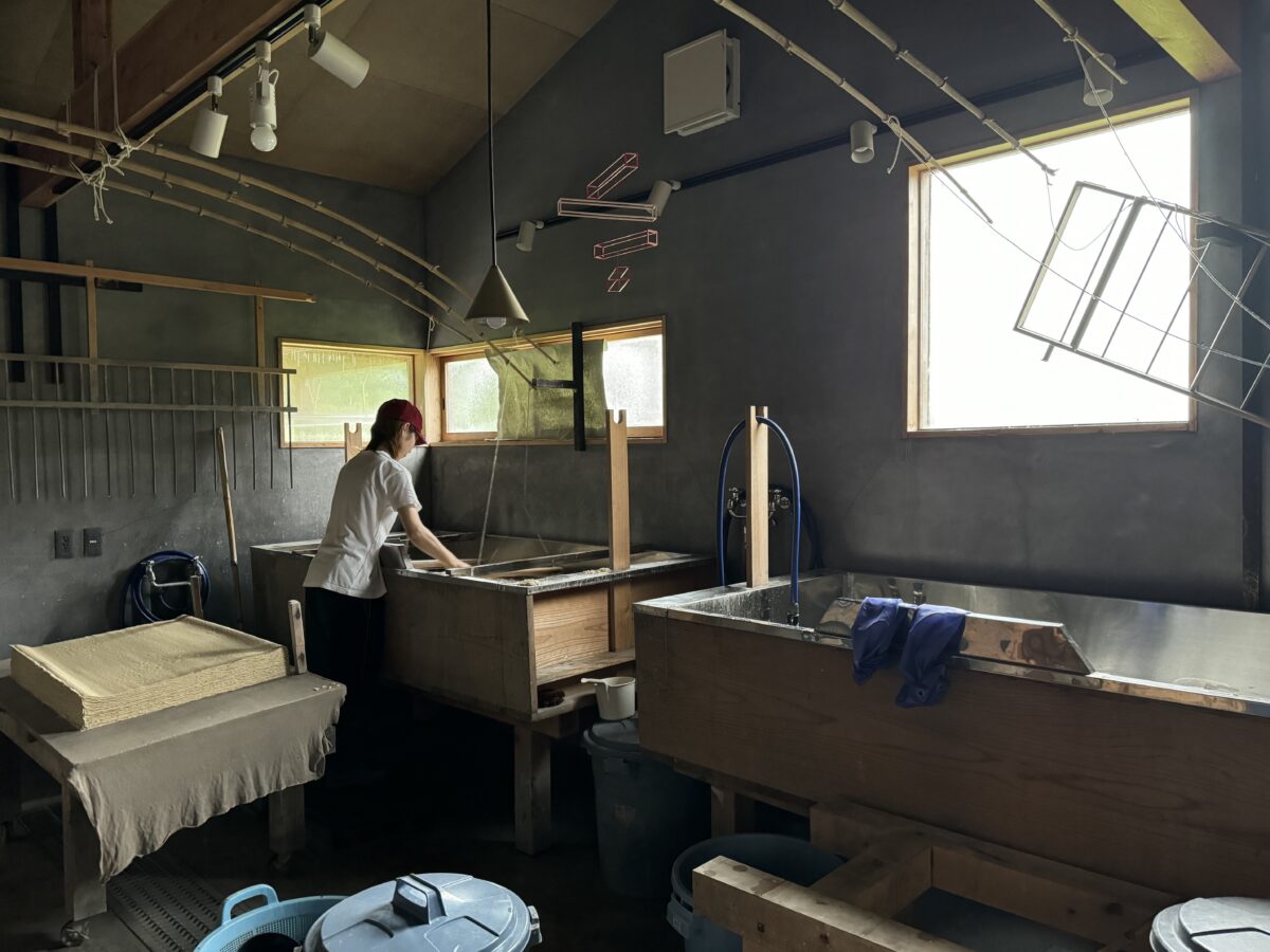 過去より続いてきた和紙を未来へ繋げるためハタノワタルで活動してきた仕事を工房名「紙漉キハタノ」で行うことにしました。作家名だと、引退した後工房が続いていかないことを危惧したためです。 現在紙漉キハタノは、約5000平米の畑で和紙の原料である楮を栽培し、黒谷和紙の伝統的な紙漉きを行い、プロダクト、内装施工までを一貫して行っています。2025年より「午後二時設計室」も立ち上げ、和紙の施工空間の提案、設計も行っています。また意識的に全国の紙漉き職人と交流し、和紙を後世に残していくための意見交換、情報の共有なども行っています。
