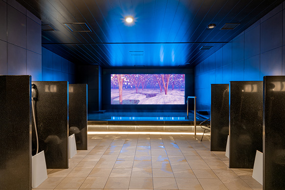 今回の刷新では、その取り組みをさらに進化させ、大浴場を“自分自身に立ち戻るための空間”として捉え直しました。福岡出身のアーティストを起用し、感性や表現力を活かした映像作品を通じて、日常から静かに切り替わる時間を演出します。